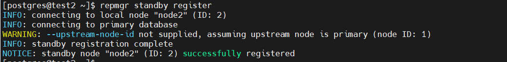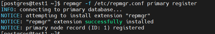 | 1 | repmgr -f /etc/repmgr.conf primary register |