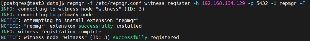 | 1 | repmgr -f /etc/repmgr.conf witness register -h 192.168.134.129 -p 5432 -U repmgr |