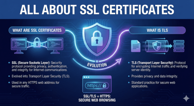 What are SSL certificates:- SSL (Secure Sockets Layer) is a cryptographic security protocol designed to provide data privacy, authentication, and integrity for internet communications. Over time, SSL evolved into Transport Layer Security (TLS), which is now the industry standard. Although the term SSL certificate is still widely used, modern websites actually use TLS encryption to…